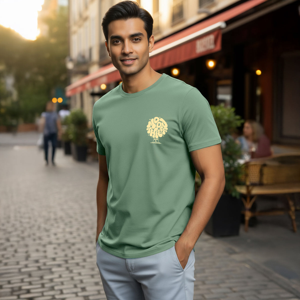The Moon Thief T-shirt features a bold moon illustration with clean typography, giving it a mysterious and artistic streetwear vibe. Designed as one of our most stylish printed t shirts for men, this piece blends expressive artwork with premium comfort. A perfect pick for fans of mens graphic t shirts who love cool designs with meaning and visual impact.